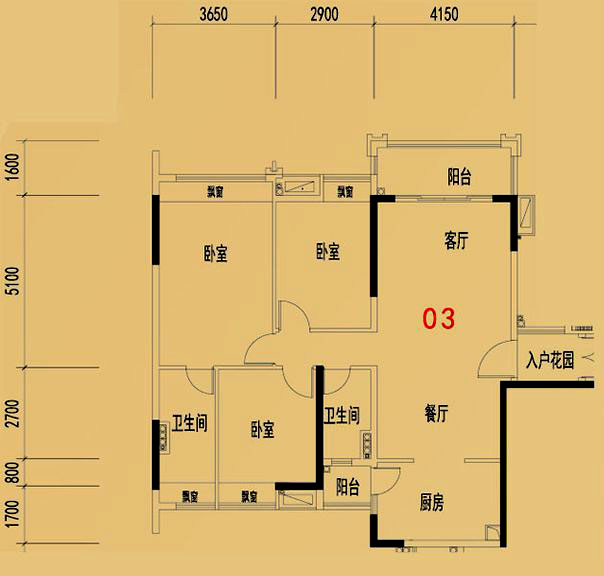 • 依云天匯B01戶型 3室面積155.00平米