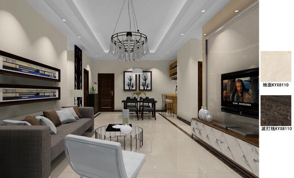 金艾陶瓷磚應用效果:徐州開元翡翠灣D戶型裝修效果鑒賞