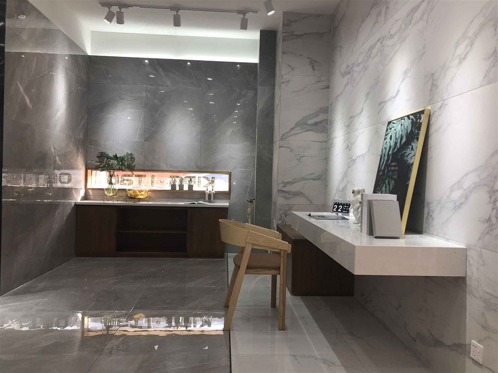上圖是由艾釉石KYP8118直鋪的墻面,磚面的一層釉是不是很亮?摸上去手感還很好,同行人都知道,我們是佛山本地唯一一家有釉料公司的瓷磚公司,艾釉石是我們的明星產(chǎn)品,質(zhì)量有保障,這款磚同樣適用地面和電視背景墻的鋪貼,看了這么多款灰色調(diào)瓷磚,不知道您有沒有喜歡的呢?