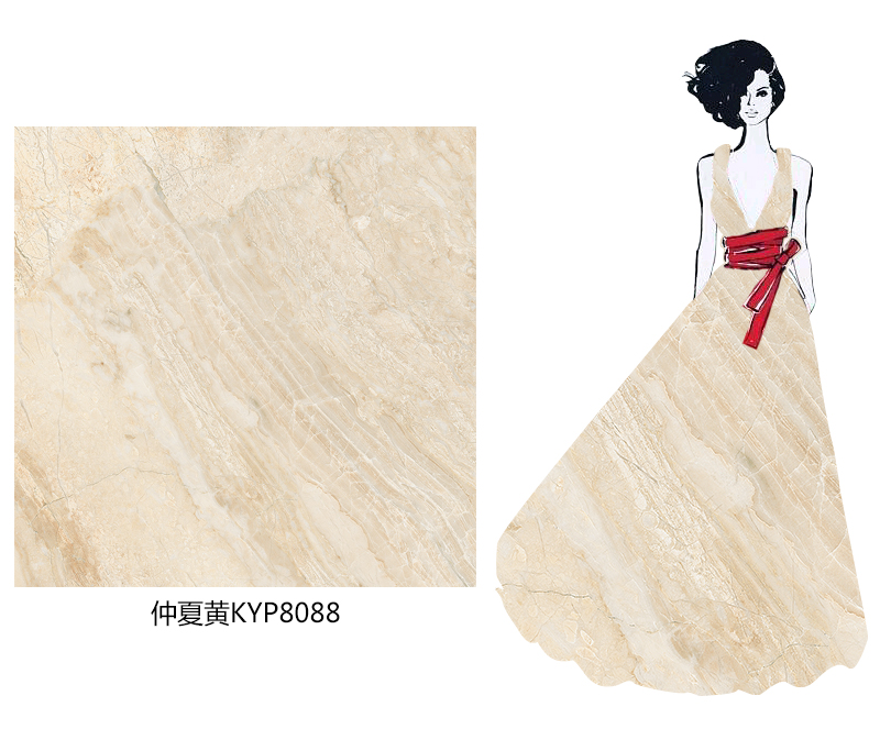金淺莎安娜取材于土耳其石材珍品丁香米黃大理石,磚面泛出中黃的色澤光彩,在晶瑩剔透的磚面下留有貝殼沙礫沉積下來(lái)的粒點(diǎn)痕跡。丁香米黃曾被歐洲貴族們用來(lái)裝飾府邸的外墻,使建筑有滄桑的歷史感。
