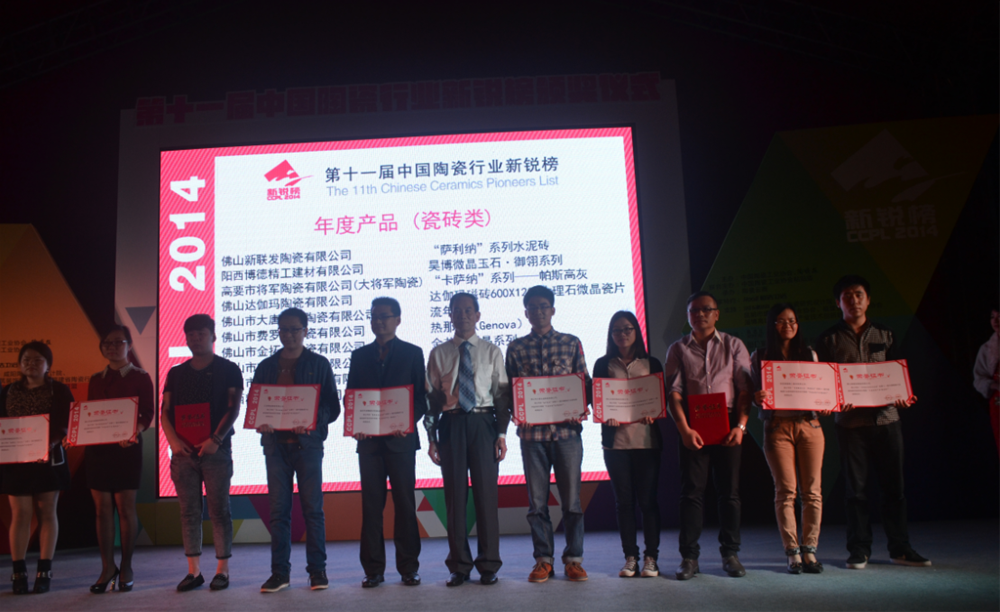 6、2015年3月28日,新銳榜群雄逐鹿,金艾陶瓷磚產品微晶石“爆晶系列”,斬獲壓軸大獎瓷磚類“年度優秀產品”。