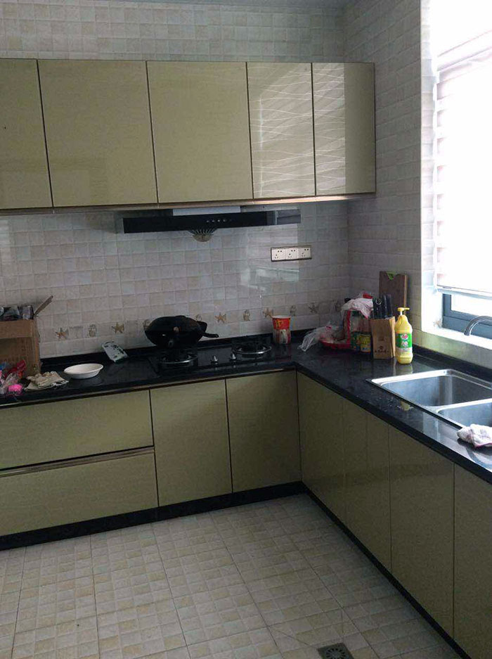 櫥柜以當(dāng)下流行的土豪金色為主色調(diào),臺(tái)面選用黑色大理石,高端、大氣!地面鋪貼金艾陶內(nèi)墻磚KPA36057系列,易于打理的同時(shí)又可呈現(xiàn)出如馬賽克般的美感,精美絕倫。