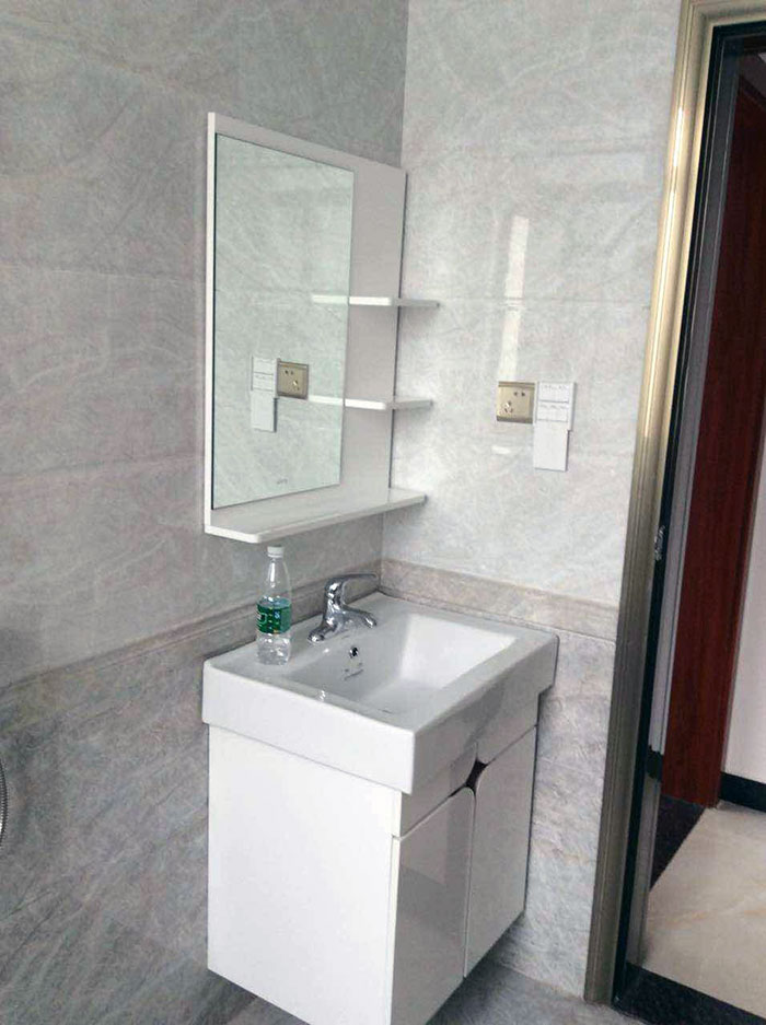 浴室柜比較小巧精致,側(cè)面紅色,柜門及洗手臺(tái)則以白色為主,給人干凈、清新的感覺(jué)。整個(gè)空間鋪貼金艾陶內(nèi)墻磚KPM36015、KPM36016系列,時(shí)尚、簡(jiǎn)約,為整個(gè)浴室空間增添了十足的現(xiàn)代感。