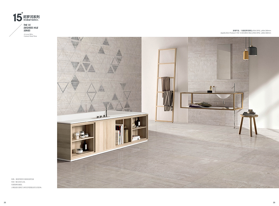 15度尼羅河,如夜幕下的尼羅河流,一路向前,偶爾也隨性地流淌,以自己的風(fēng)華凝聚時(shí)代的靈魂給予世人。追溯千百年前的智慧,設(shè)計(jì)師將尼羅河的蜿蜒流長(zhǎng)帶入產(chǎn)品的抽象表現(xiàn)中,在傳承中沉浸強(qiáng)烈的自然氣息,風(fēng)格獨(dú)特而彰顯藝術(shù)的閑逸,傳承精髓而散發(fā)著浪漫風(fēng)情,無(wú)論是大面積鋪貼,還是與其他元素混搭, 都在相得益彰中凸顯濃郁的文化韻味。