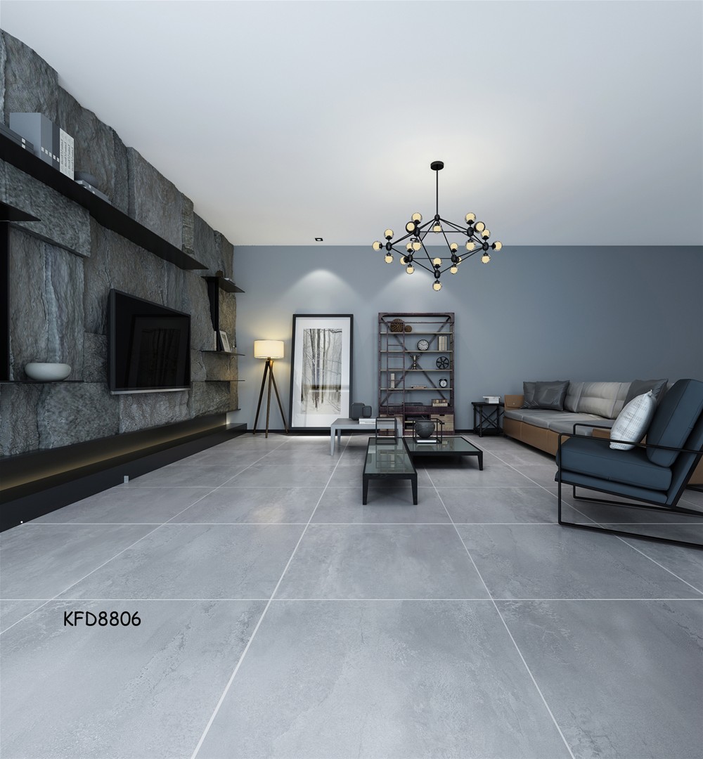 灰色調15º緞光釉鋪貼的客廳,它既不濃妝艷抹,也不輕描淡寫,緊抓80、90后消費者的審美:簡單、隨意、個性,在軟裝上,更是注重細節的表現,灰色無論與黑白搭配,還是被黃色如此明亮的顏色點綴,灰色肌理的變化都是多姿多彩,給空間無限的美感。