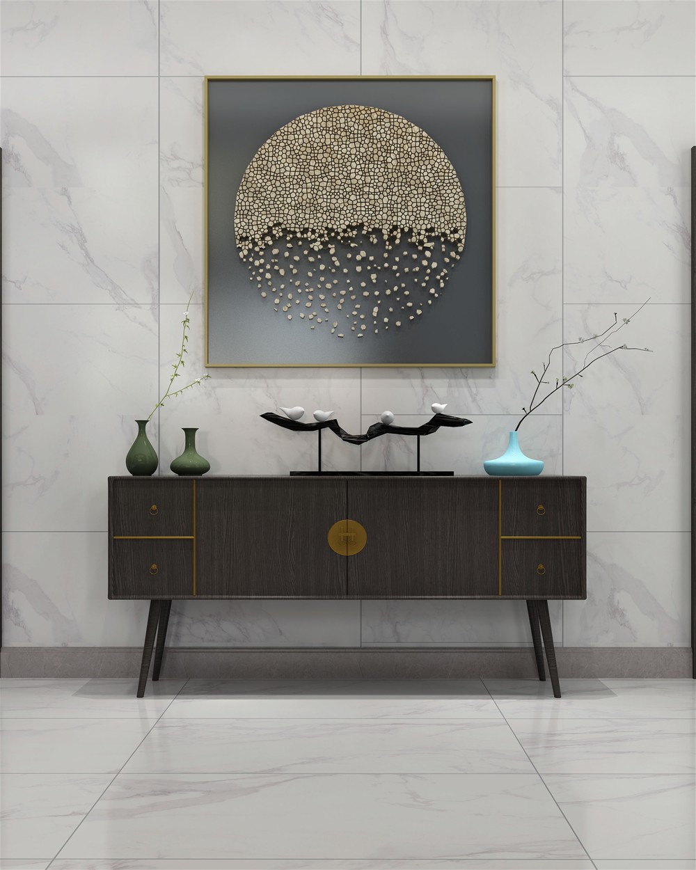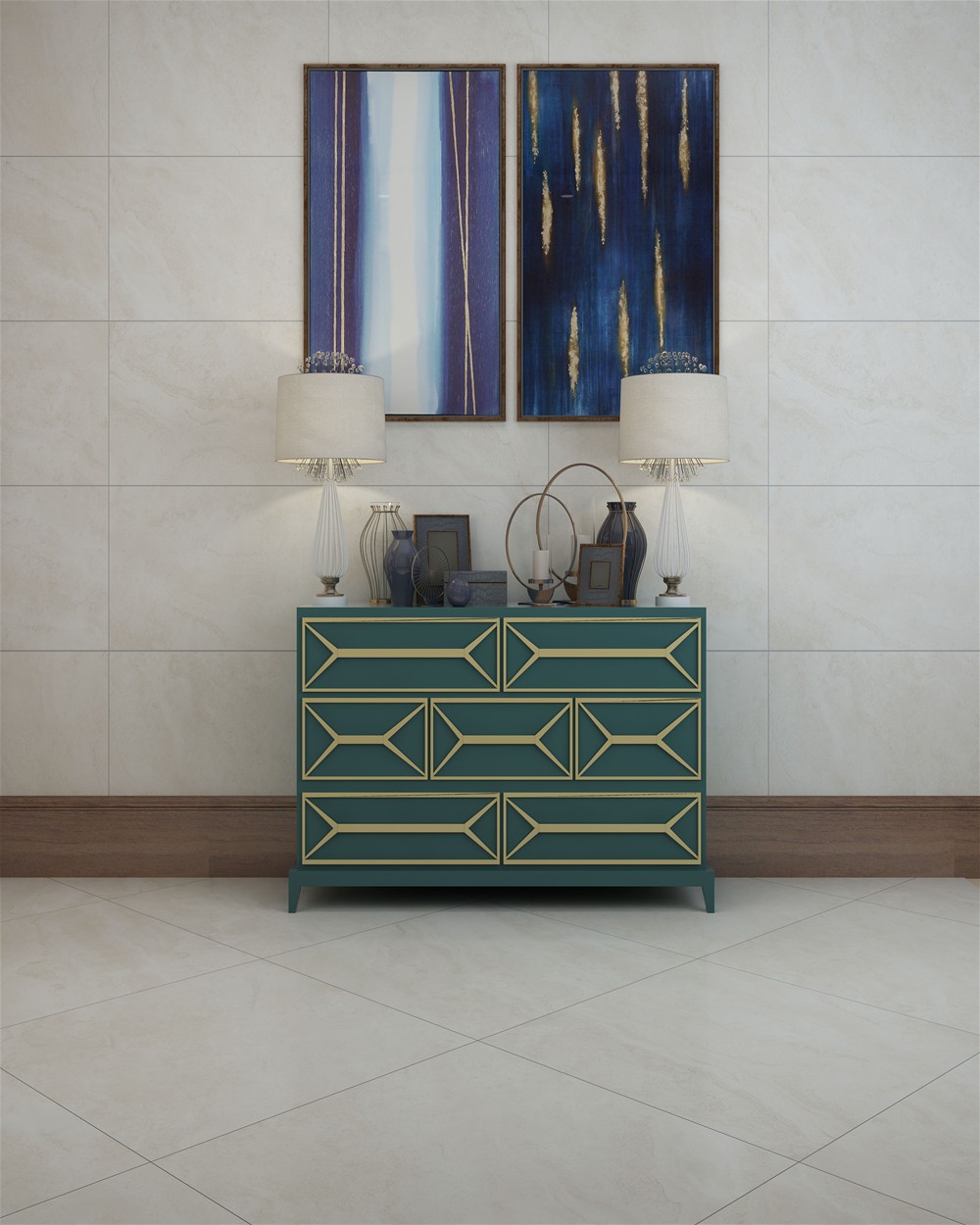 緞光磚是在柔光磚的基礎上發展起來的,只是緞光磚的釉面效果比柔光磚的光亮等級更低,釉面更加柔潤絲滑,遂稱其緞光。在柔光磚的推廣過程中,陶企更注重磚面的質感效果;但發展到緞光磚,企業融入了更多的設計理念在其中,包含多種顏色基調,比如在某一特定的色調中,將其產品效果豐富起來。通常業內大多將29-55度歸為柔光磚,其有一定的視覺光亮度,但并不強;光亮等級在15度左右的產品,現在行業將其稱為緞光。