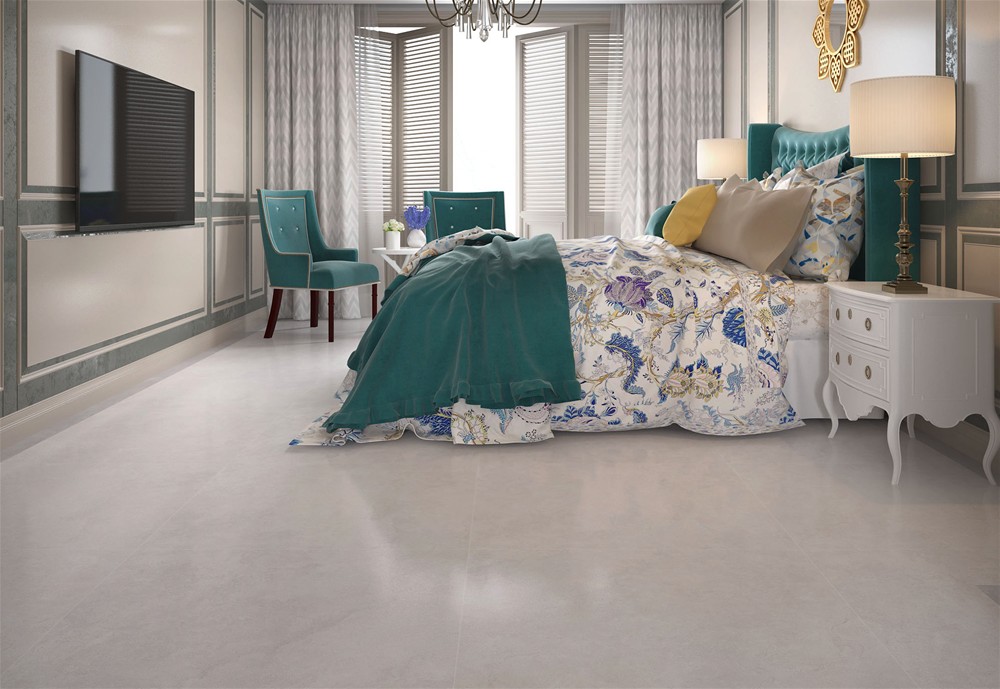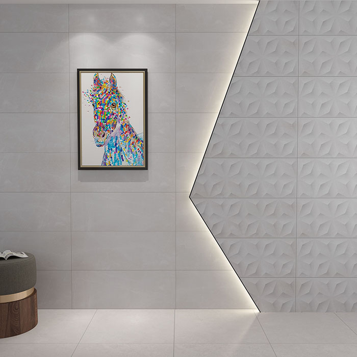 白色的表面素雅而寧靜,灰色線條橫跨其中,自然而純粹,色澤素凈大方,光感柔和自然,似乎是將一層薄薄的絲綢印刻在瓷磚的表面,縷縷輕絲纏繞,觸感舒適細(xì)膩,帶來如綢緞般絲滑體驗。