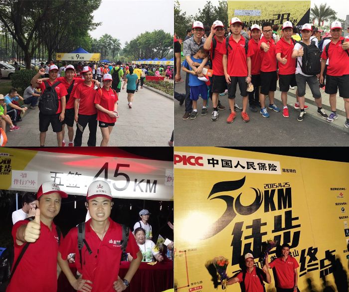 金艾陶人始終秉持著挑戰(zhàn)極限,信念可以戰(zhàn)勝一切困難的精神。在4月25日佛山50公里慈善徒步行活動中,金艾陶人用超強的耐力與毅力,挑戰(zhàn)自身極限,用雙腳丈量佛山,留下了“艾”的足跡。