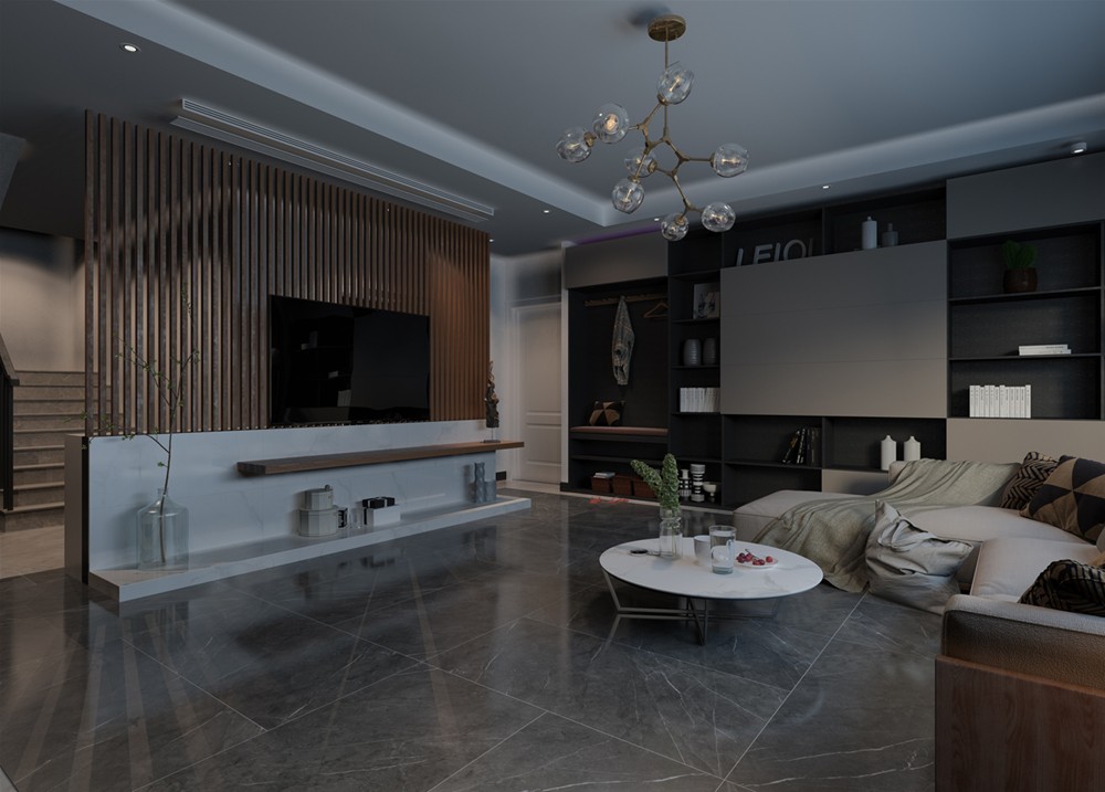 色澤沉穩(wěn)深邃,絲絲細紋滲透出石紋韻律,團流紋呈風干的水墨狀塊,質感厚重,如簇擁的錦花,素淡不失變化,自然不失時尚。為居者營造靜謐、淡雅的空間體驗感,大面積使用又會呈現大氣恢弘的畫面感。